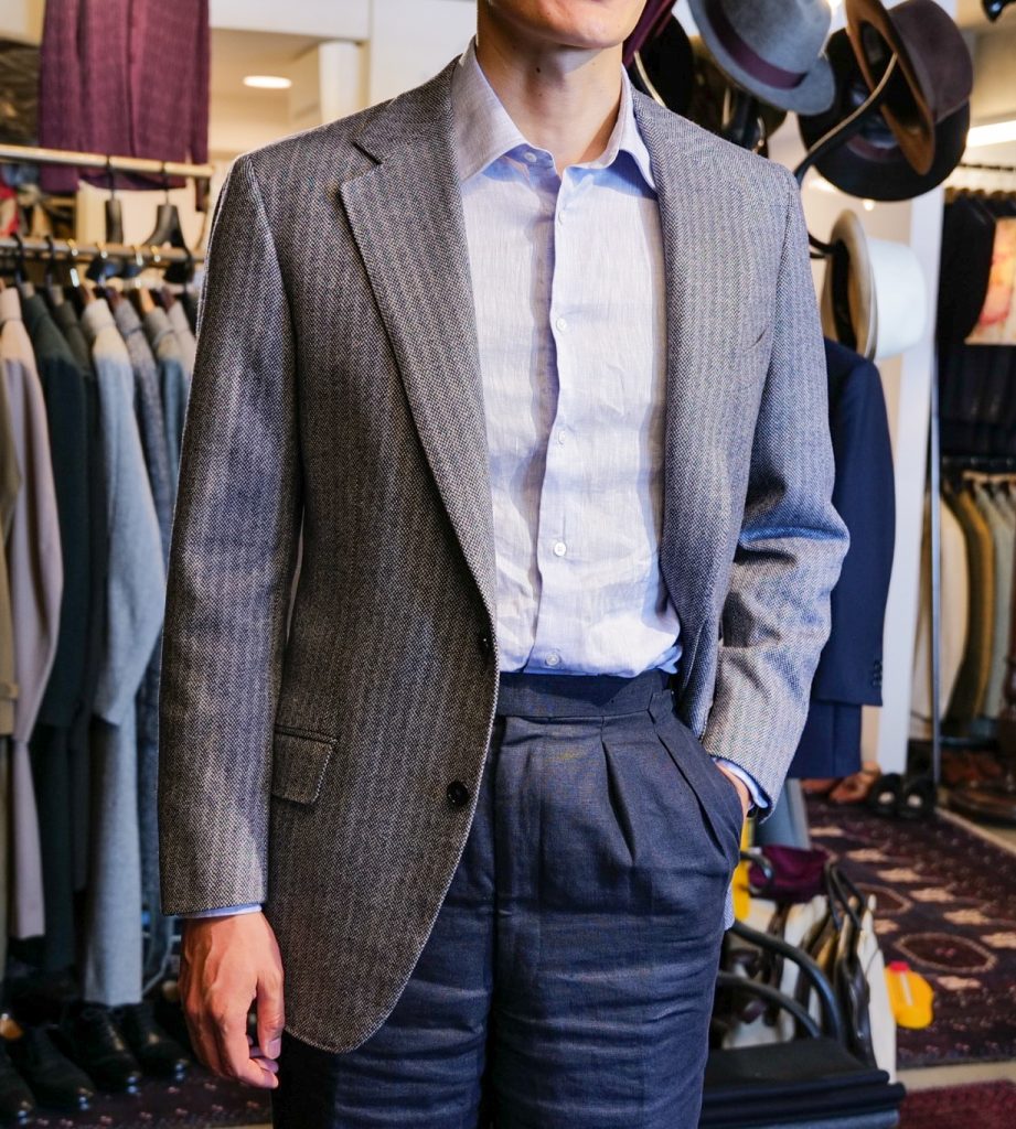 今年の春に初めてお越しいただきましたS様。今までご自身でたくさんのスーツを頼んでこられたS様は、ご自身のスタイルをお持ちの方でした。