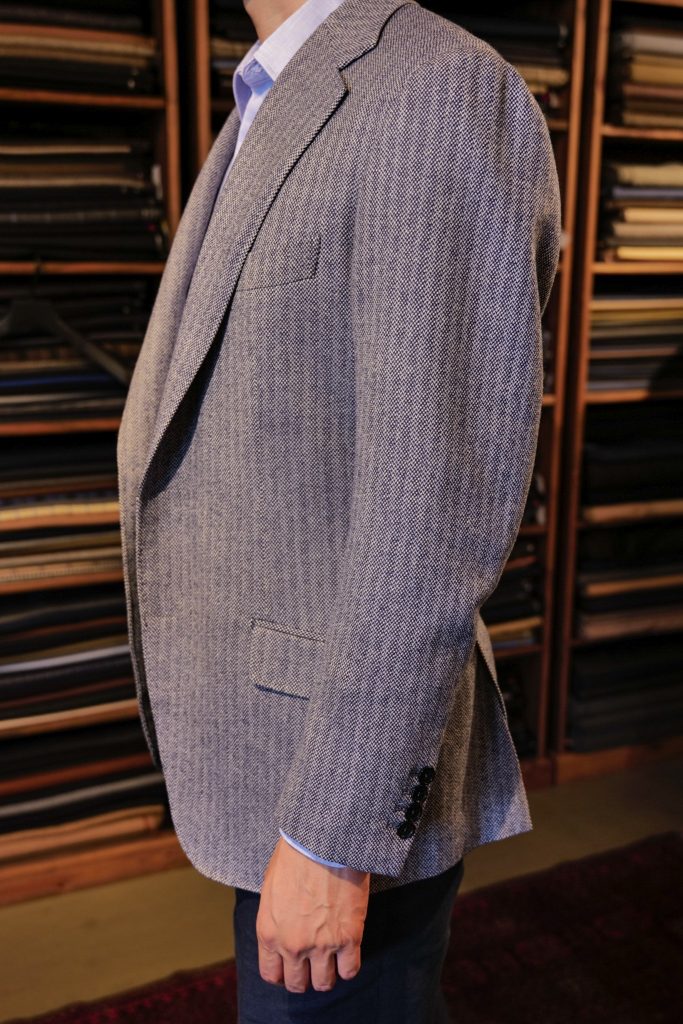 いつもお越しいただいておりますO様。今回はそんな特別な生地でジャケットをお仕立ていたしました。