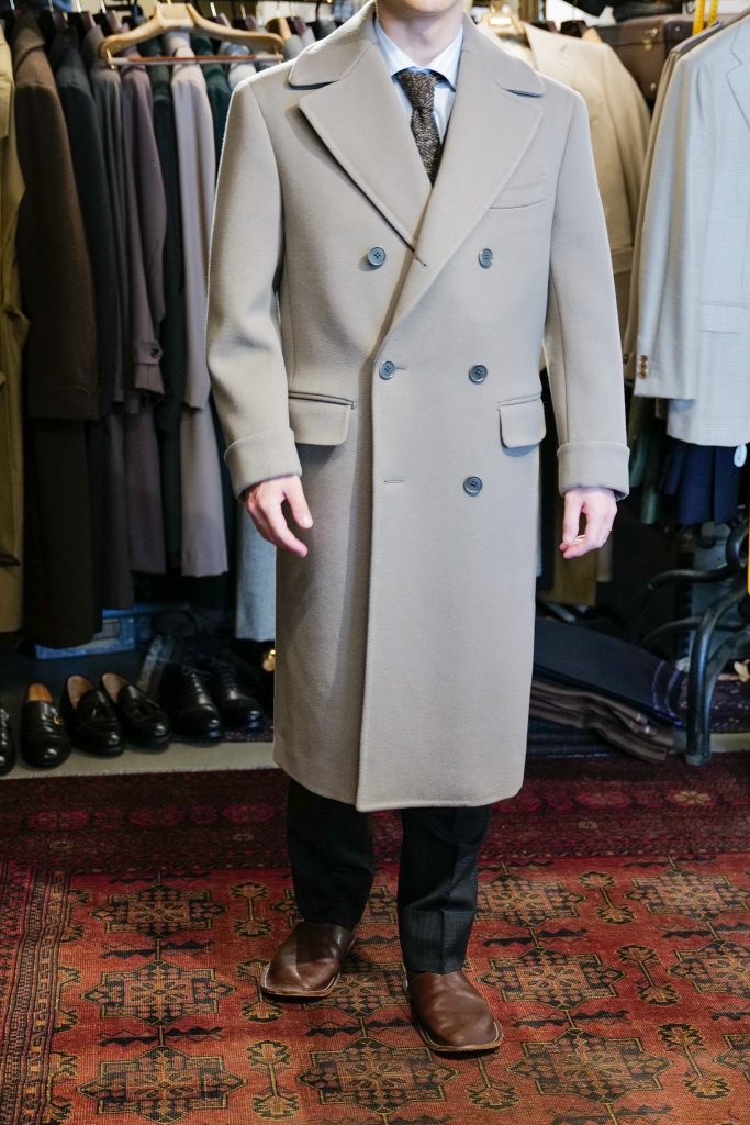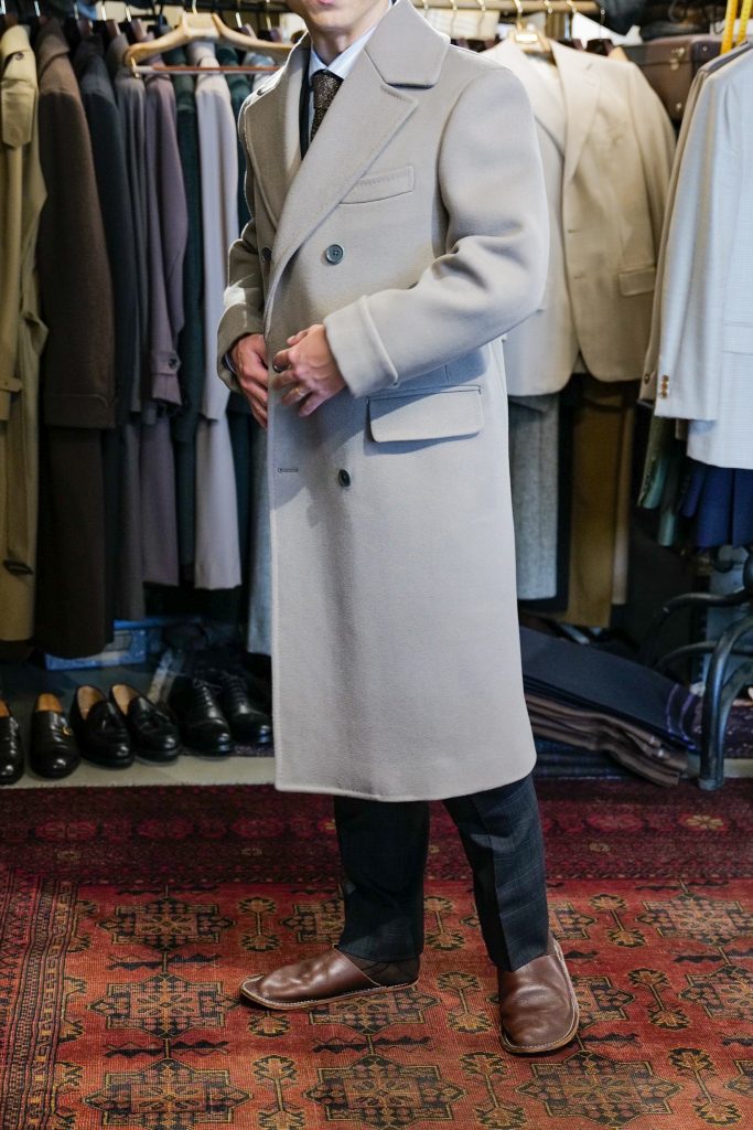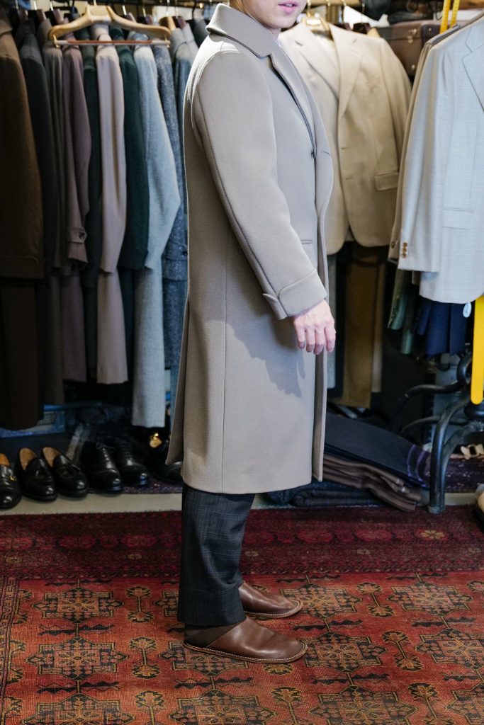 小柄なS様に900gmsの襟の大きなアルスターをお作りするというのもなかなか手強い相手を送り出したことになりますが、何年もご自身のスタイルでテーラードを楽しまれてきたS様ですので、全く着負けすることなく、着こなしていただきました。