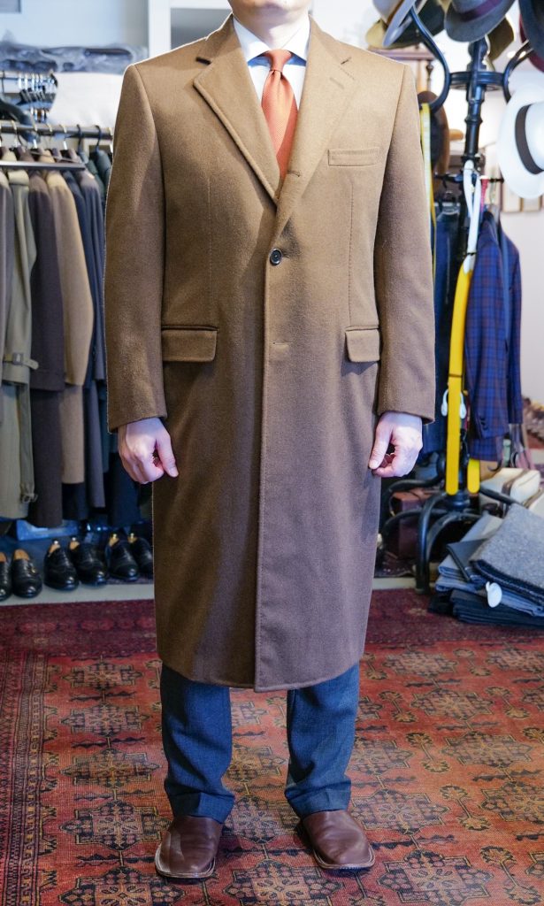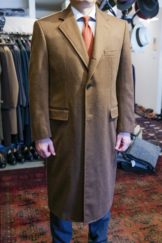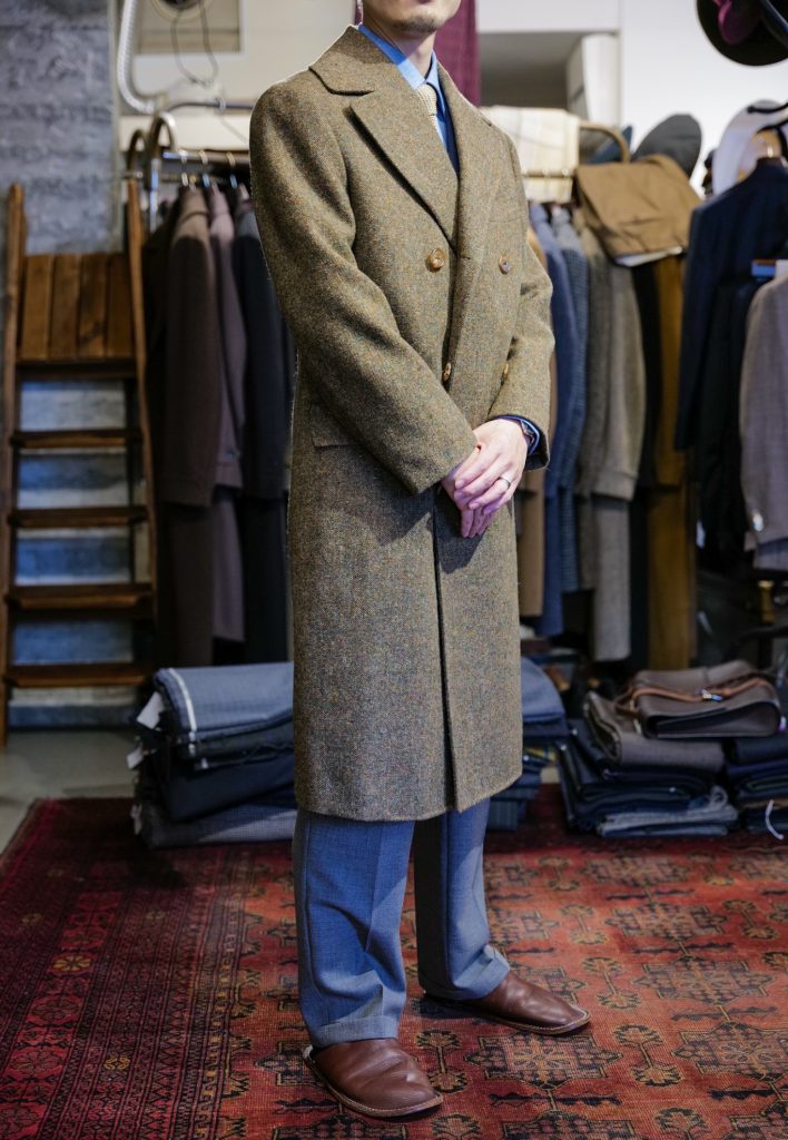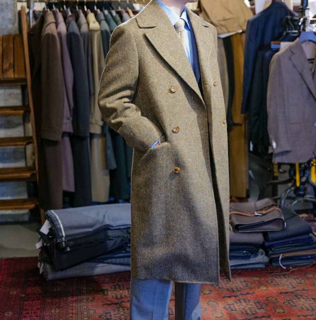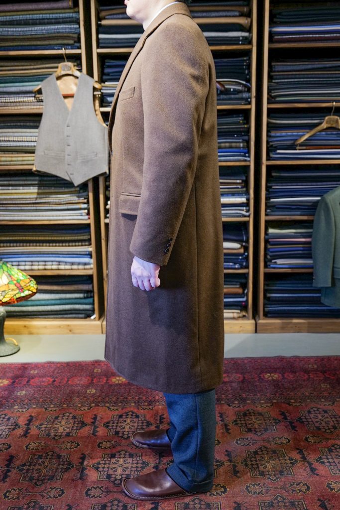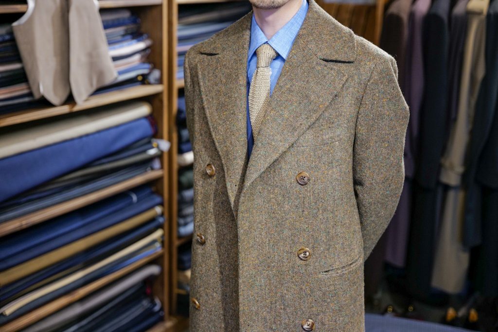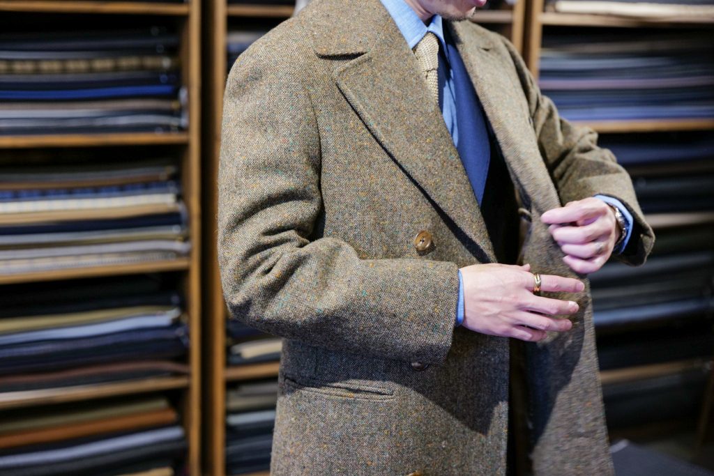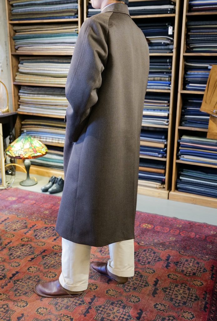 細身のM様に、適切なゆとりと長めの丈でアルスターコートをお仕立ていたしました。