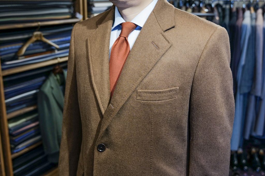 肉厚なものではなく、目は詰まっているものの比較的軽い生地感で、スーツでもコートでも、どちらでも使える生地です。
