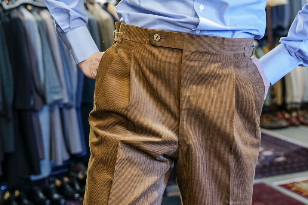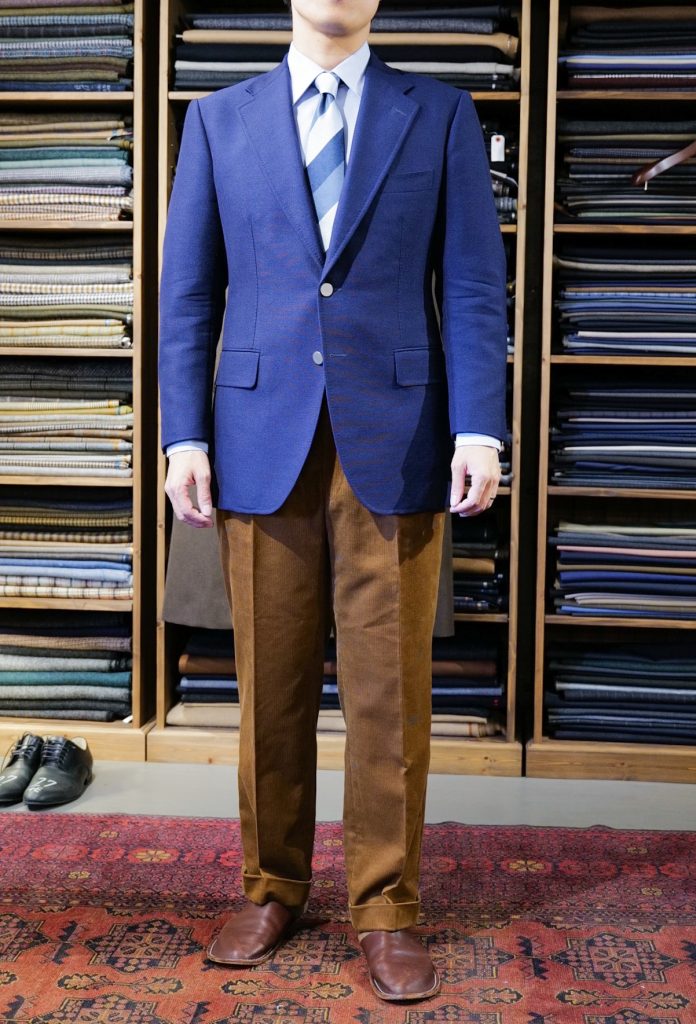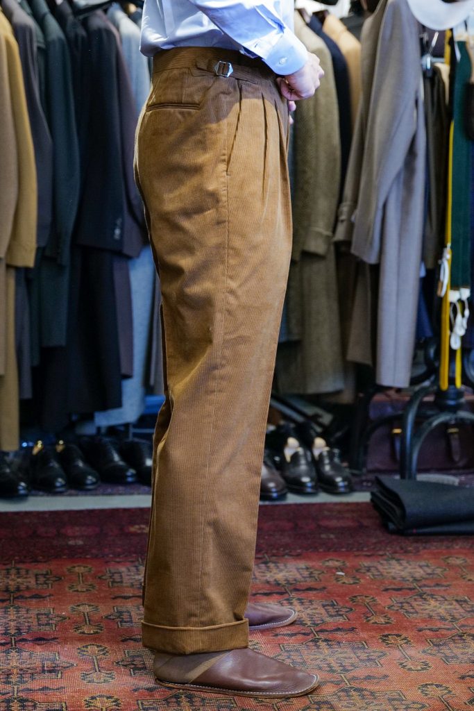 そして一緒にお作りしたトラウザーズは、薄手のコーデュロイ、通称サマーコーデュロイ。
