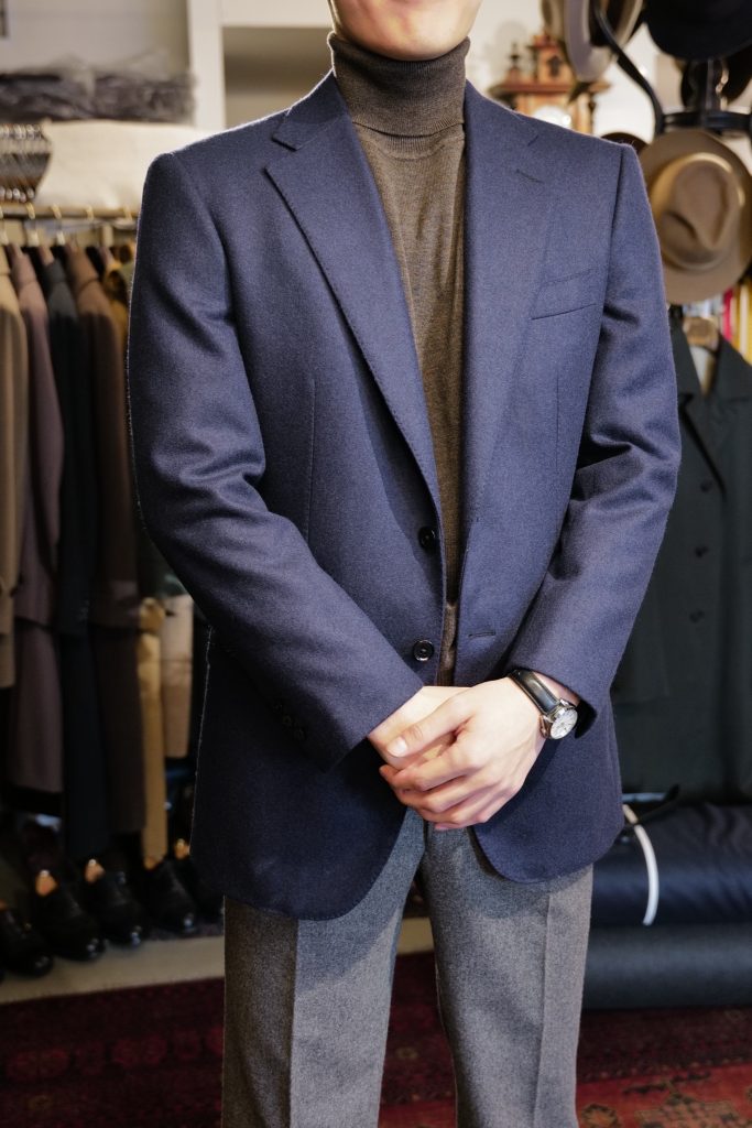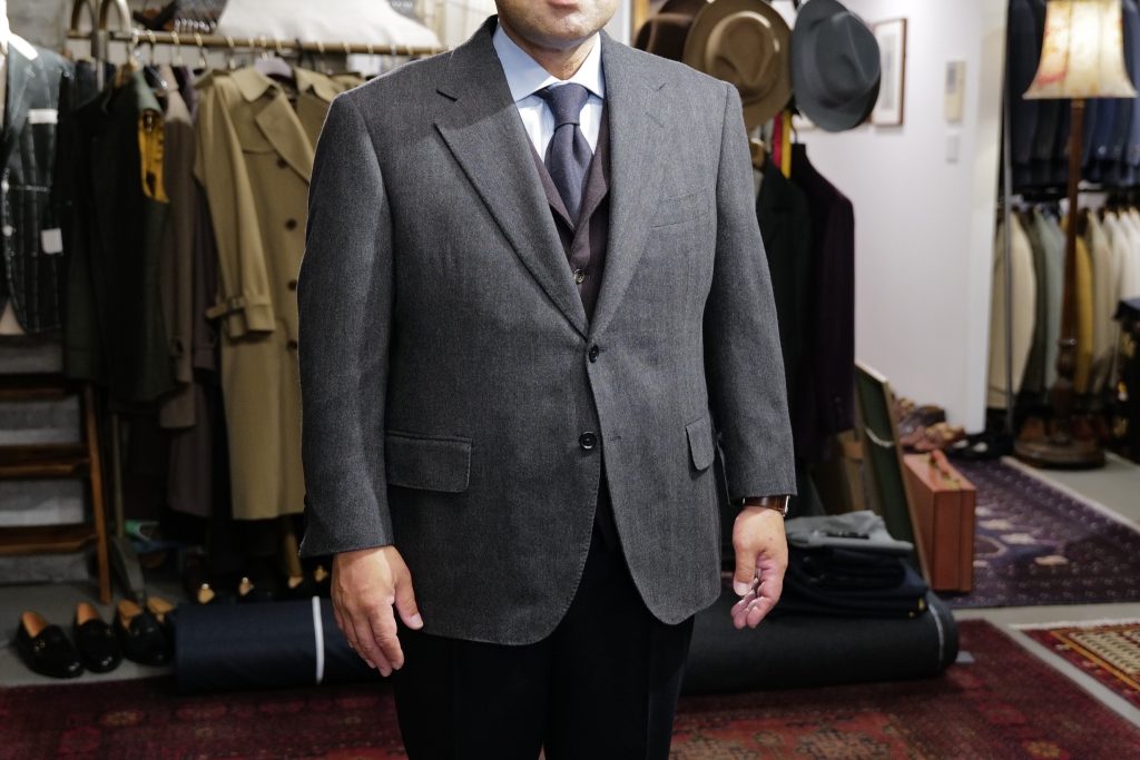 ​お体ががっちりしていらっしゃるK様。過去にツイードジャケットを2着お仕立てしましたので、今回はフランネルジャケットをお作りいたしました。