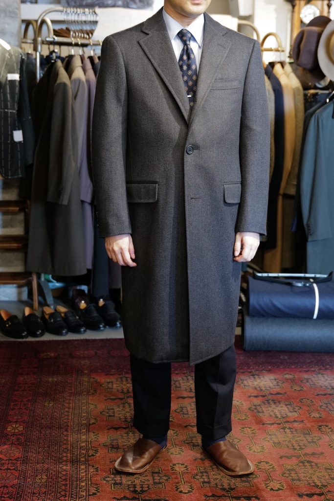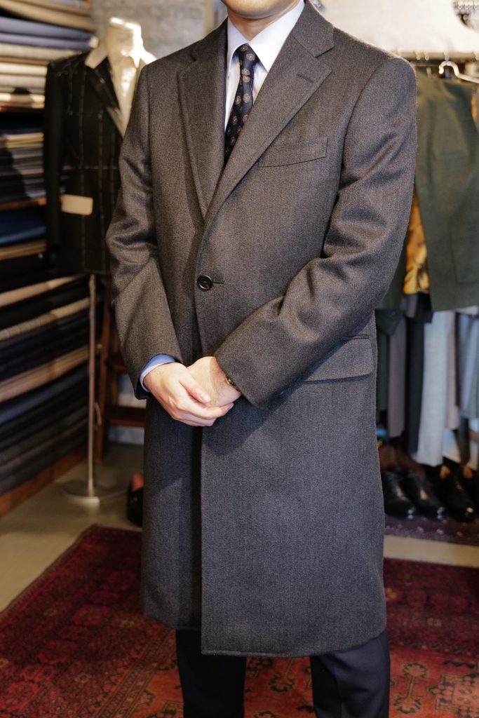 ​初めてお越しいただきましたA様。ご依頼いただいたのは、お仕事で使うチェスターフィールドコートです。