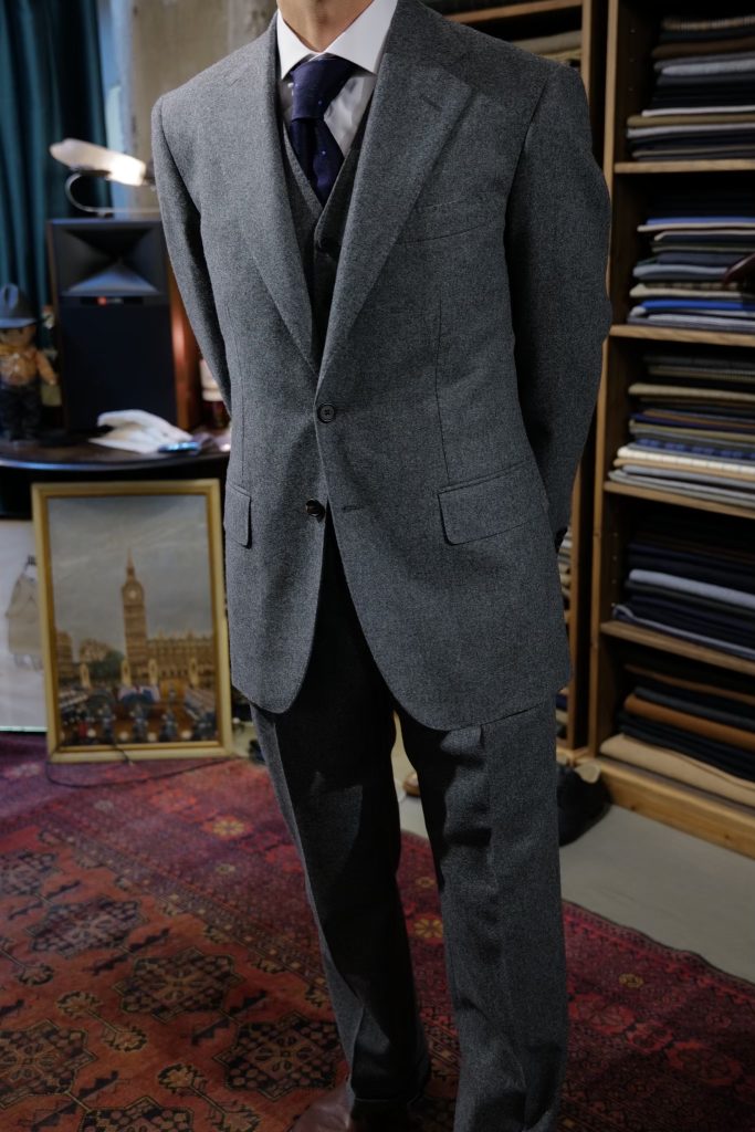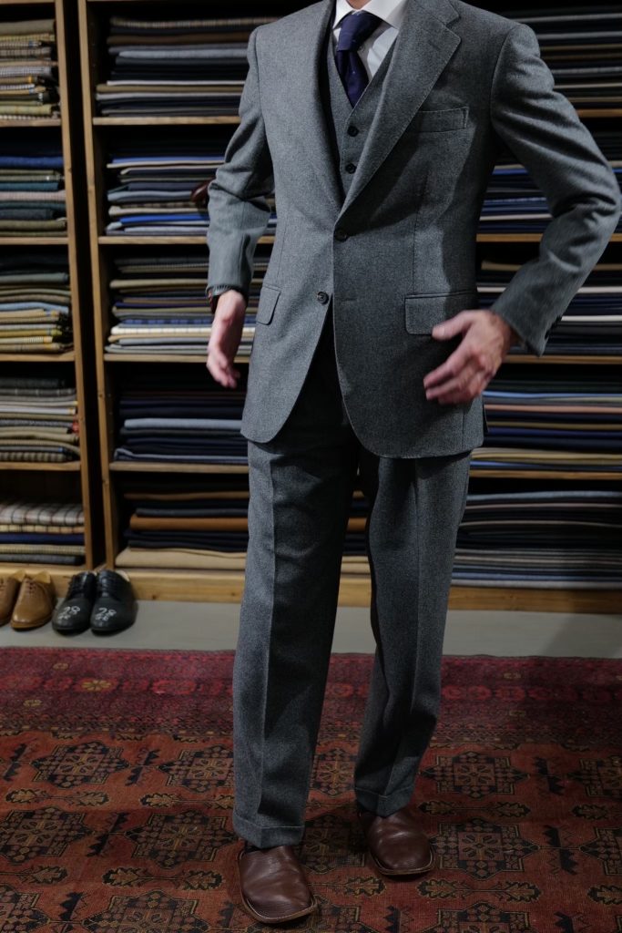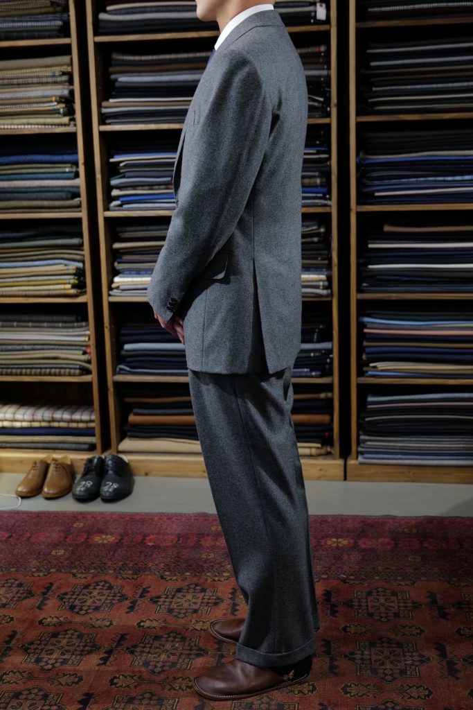 今回は明るめのグレーでフランネルスーツをお仕立ていたしました。