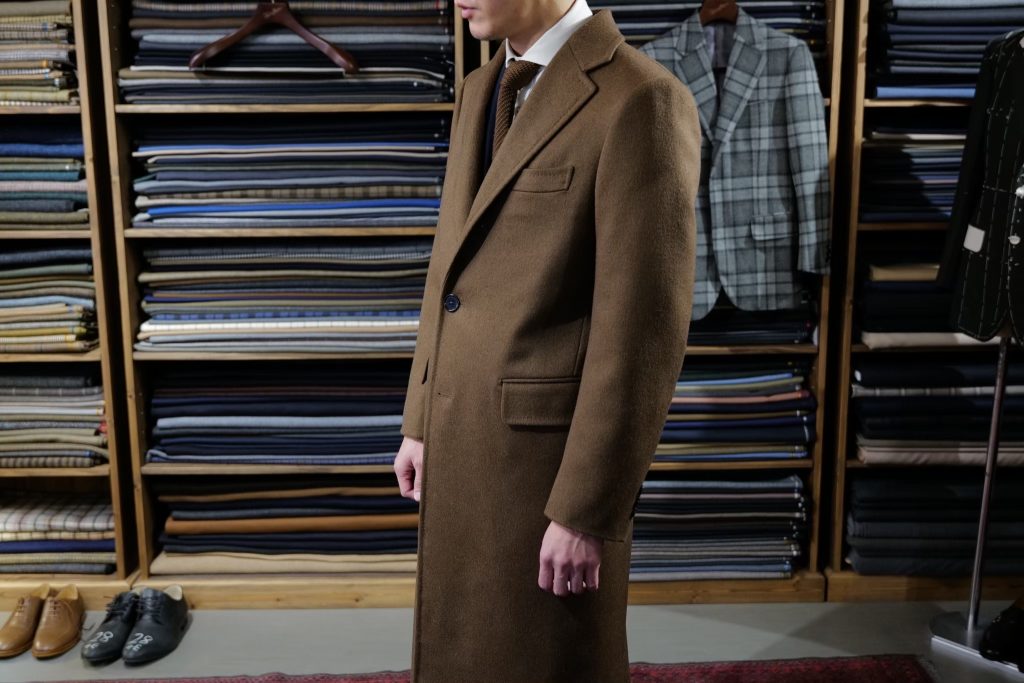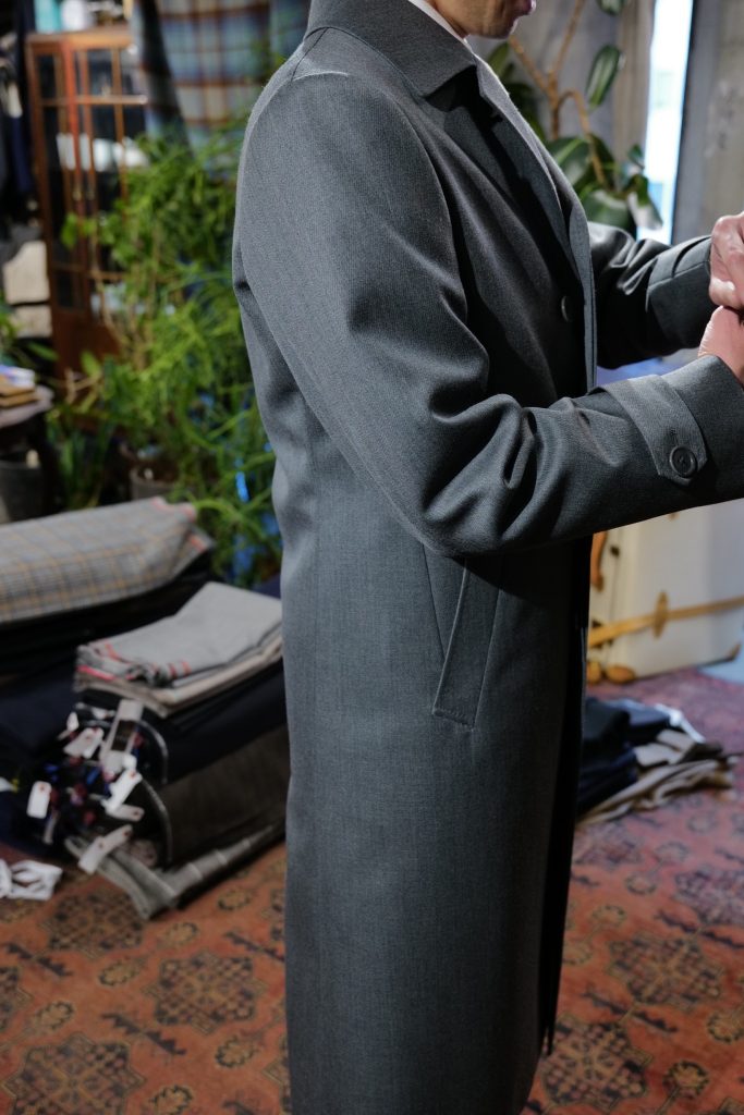 さて、今回A様にお作りしたコートは、ヴィンテージのMoorbrookの生地を使いお仕立てしたチェスターフィールドコート。