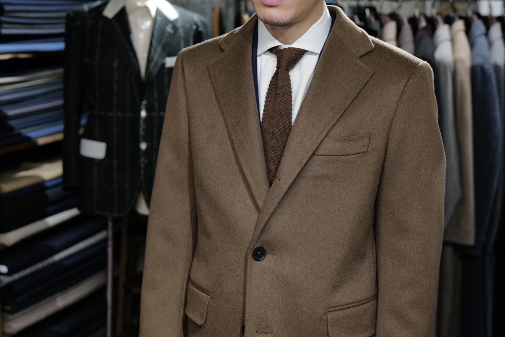 カシミヤウールという贅沢な生地でありながら、かなりハリのあるヘビーな触り心地。